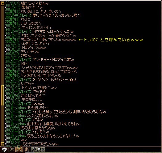 一応、名前は伏せておきますが(ぇ)、某Gメンの酔っ払いっぷりがものすごく、Gチャが笑いの渦で大騒ぎになったのですw