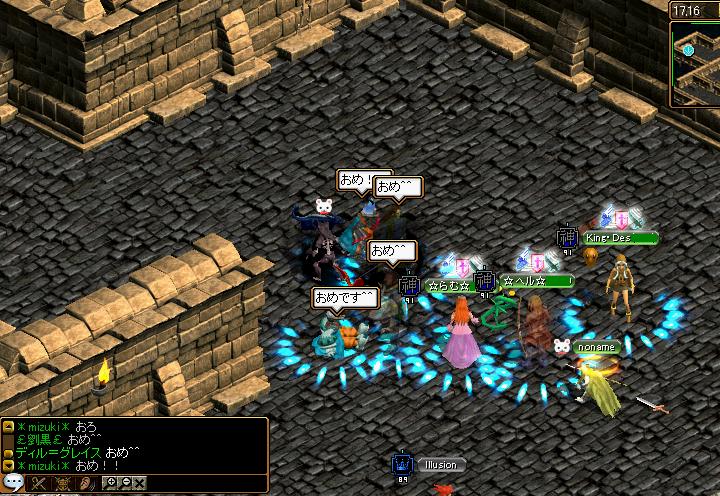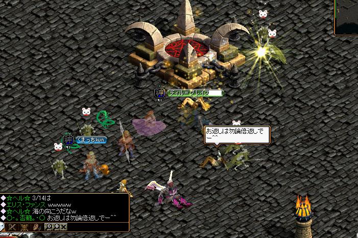 その後ビッグさんのテイムのお手伝いに参加することになりました。テイム終了後はビガプ銀行でブルと長老にGv装備を見てもらいました。