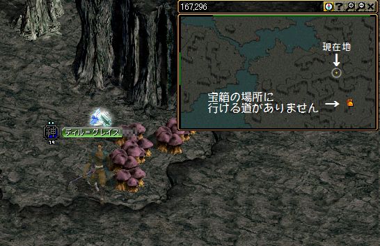 その時に宝の地図が出たのですが、この洞窟ではいつも近場に宝箱が出ないんです。毎度のことながら、この洞窟の宝箱は取れる場所に出ません・・・・・