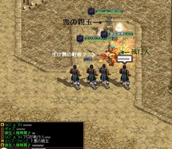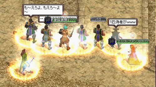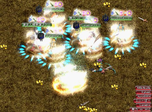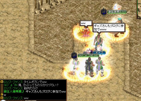 で、なぜか皆してNPCと並んで遊び始め、通りすがりのWizさんにエンチャかけられてしまいました。