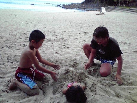 だいぶ日が傾いたので、今度は砂遊び開始ですw家族の後ろを見てわかると思いますが、ほとんど貸切状態でしたw