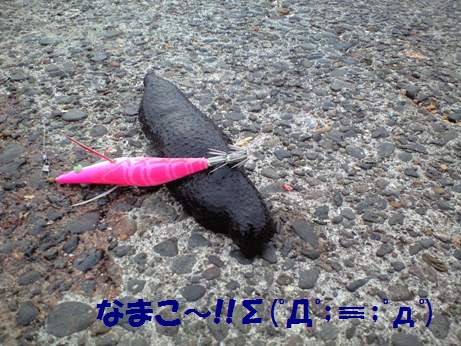 釣りの成果!針にかかって釣られたなまこ・・・・・ヨクさんってば・・・よっぽど魚やイカに嫌われているようですw