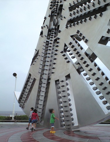 上の写真で後ろの方に写っていた巨大モニュメントの前まで行きました。実際にこの場所付近の海底工事で使われていたカッターの実物大だそうです、大きいですよね~