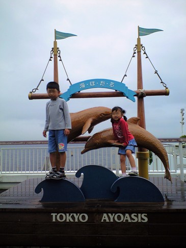 帰りにベイブリッジの下にある大黒ふ頭パーキングにも立ち寄ったので、ベイブリッジをバックに写真を撮ろうとしたけど、子供に拒否られました