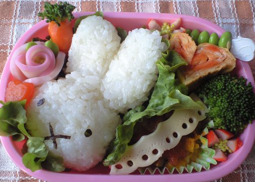 最後ということで娘のリクエストに応えてミッフィーちゃんのおにぎりにしてみました。
