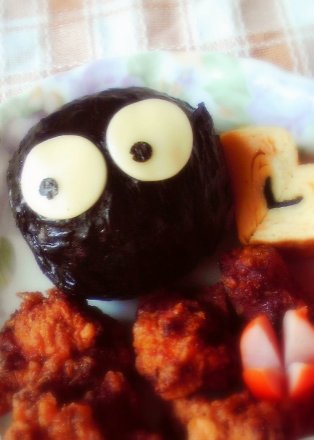 海苔で全体を覆ったおにぎりを爆弾と言いますが、これはそれをアレンジして「まっくろくろすけ」ですw