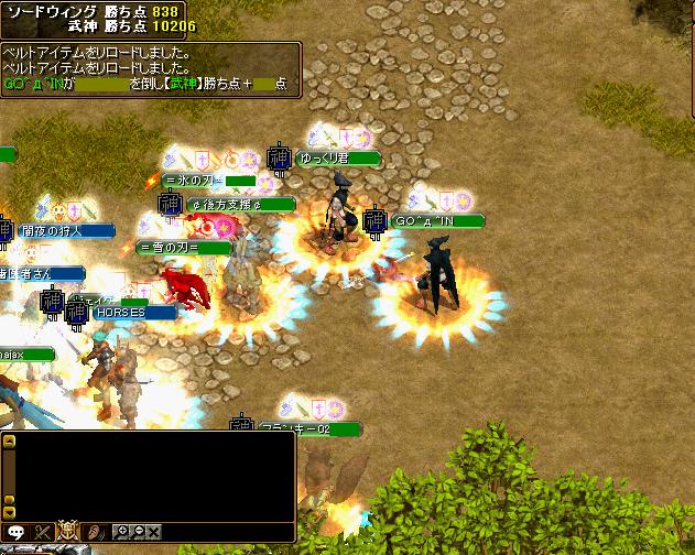 とくに一人の剣士さんがかき回していた感じで、足止めしても烈火されてしまって攻撃できなかったりタゲが外れたりでうまくかわされてしまったし、お相手のアスヒも上手でした。