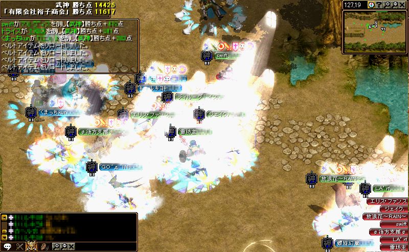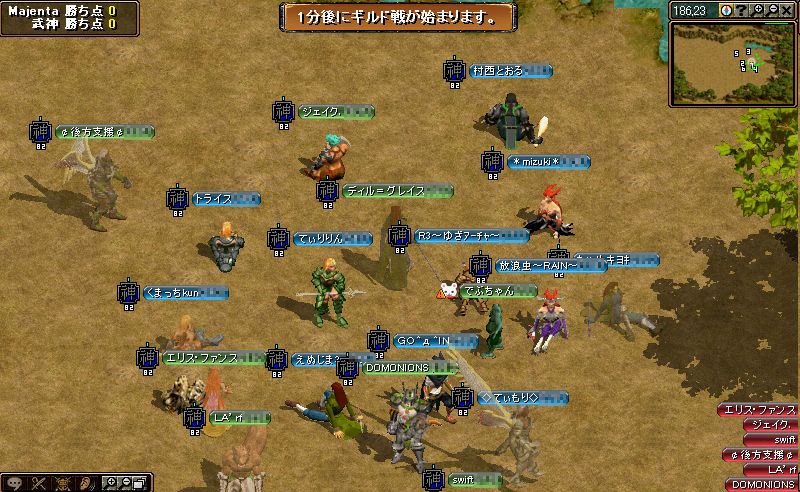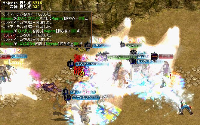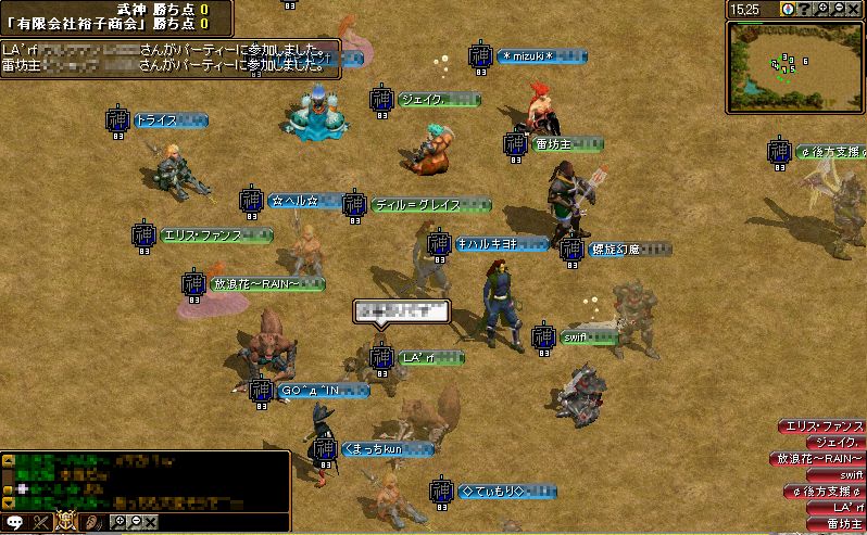 開始直前に全てのPTが解散されてしまうという変な現象がありましたが、武神だけではなく裕子商会さんでも同じ現象があったようで、お互いに焦りましたね^^;