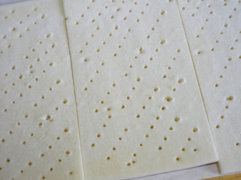 4.切り分けたパイシートの底部分のほうに、フォークで穴を開けます。