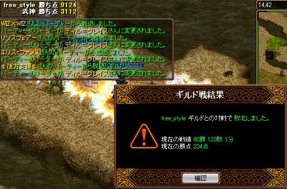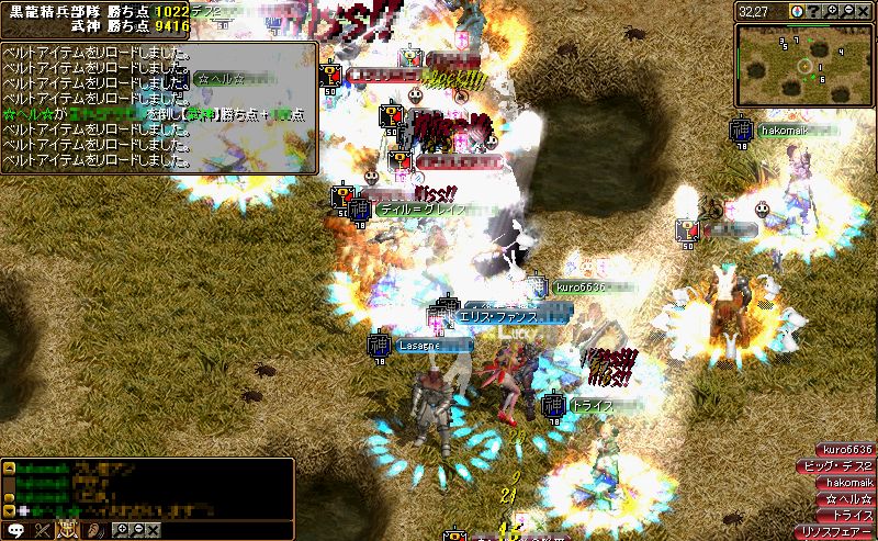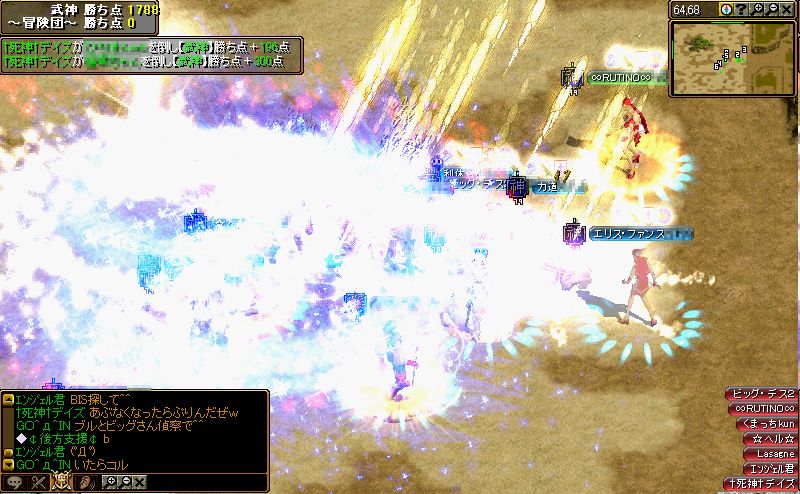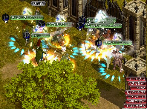 一気に紋章のところまで行ったものの、まわりのポイントを破壊しなくてはと、PTに移動するように声を掛けて走り、ポイントにたどり着いたのは私とBisさんw