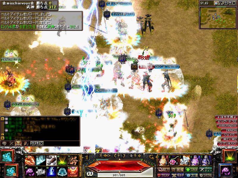 紋章付近はというと、防衛側も守るのに必死で、こちらも紋章を壊すのに必死なのでいろんな攻撃が飛び交って、画面が真っ白で紋章の耐久値見えませんw