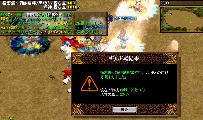 何度もタゲられて逃げ延びてはいましたが、ブレが切れたところで足止めとディスペと集中砲火・・・・そしてパタッ(pq