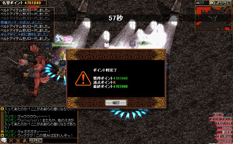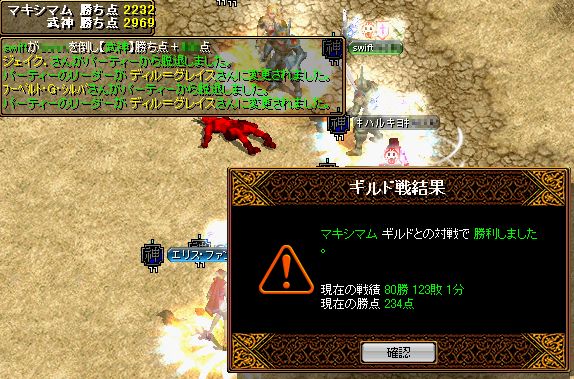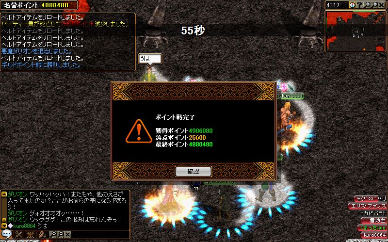 最後の方は、たまねぎさんの武道さん?シフさん?だけが残ったのですが、補助が切れて支援もない状態での粘り強さに感動しました。