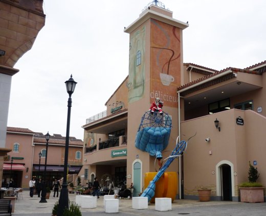 駅からアウトレットモールに続く歩道には大きなクリスマスツリーが飾ってあり、街路樹のイチョウは綺麗に紅葉していました。夜に来たらイルミネーションが綺麗そうだなぁ~