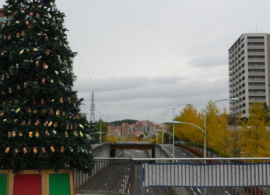 駅からアウトレットモールに続く歩道には大きなクリスマスツリーが飾ってあり、街路樹のイチョウは綺麗に紅葉していました。