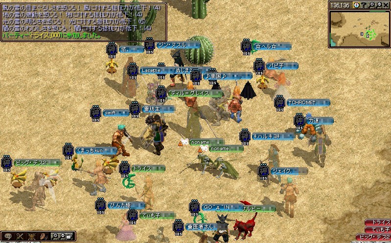 ソロまたはペアハンとおしゃべり中心でまったりと遊んでいます。