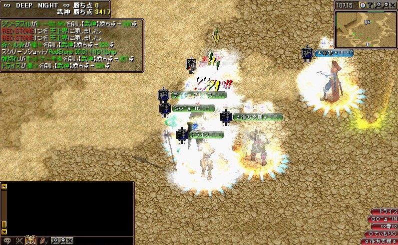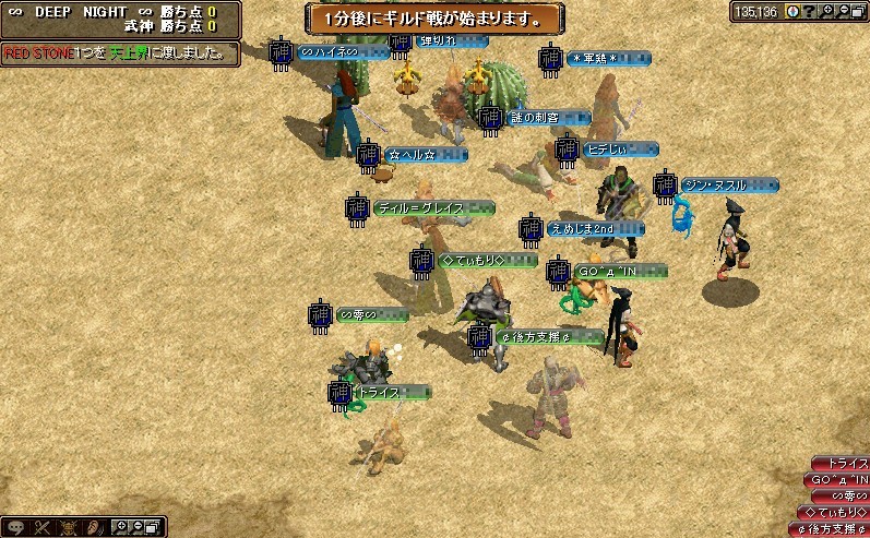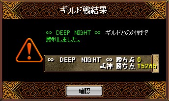時間帯的にいつもの場所あたりで、対戦したことのないギルドさんに後入れしてみましたが、お相手は人数も少なく平均レベルが武神より少々低かったので、終始こちらが有利な展開になってしまいごめんなさい^^;