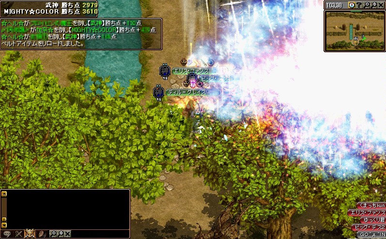 対戦相手 MIGHTY☆COLOR (紋章:薄紫と白の背景、アルファベット「Free」)