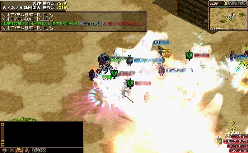 今回は高レベ剣士さん・ランチャさん・武道さんの粘着がすごく、逃げるのが精一杯であまり仕事をさせてもらえませんでした;