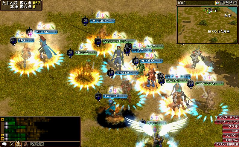 それと、前回戦った時にお相手の武道さんが素晴らしくて感動した記憶があるので、今回も楽しみにしていたのですが、奇襲はあったもののその後の戦法というかが前回とはちょっと違い・・・、画面の一番上にコルでかたまられている状態がほとんどでした。